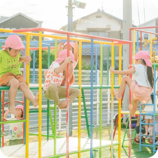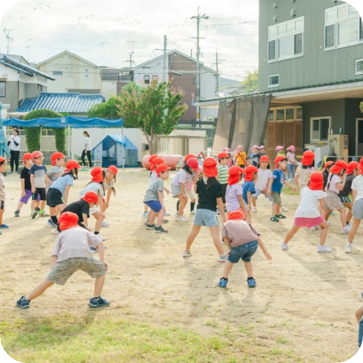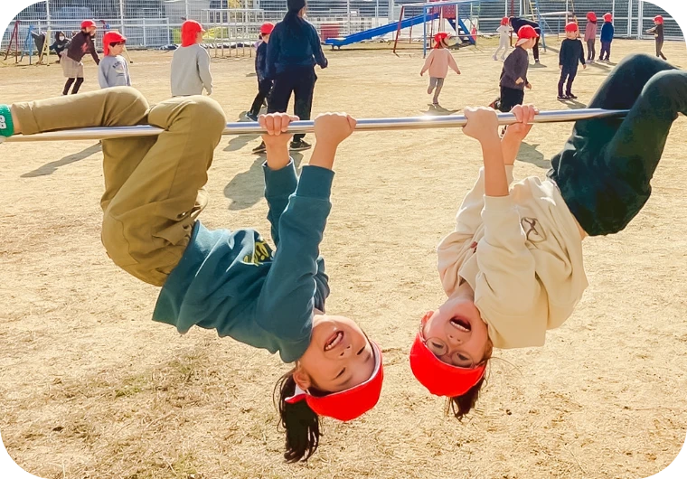 年中・年長児さん対象に外部の講師の先生に来ていただき指導をお願いしています。子どもたちの基礎体力や体幹づくりを基本とし、身のこなしや運動することの楽しさを学べるよう取り組んでいます。指導は(株)総合体育研究所様にご依頼しています。